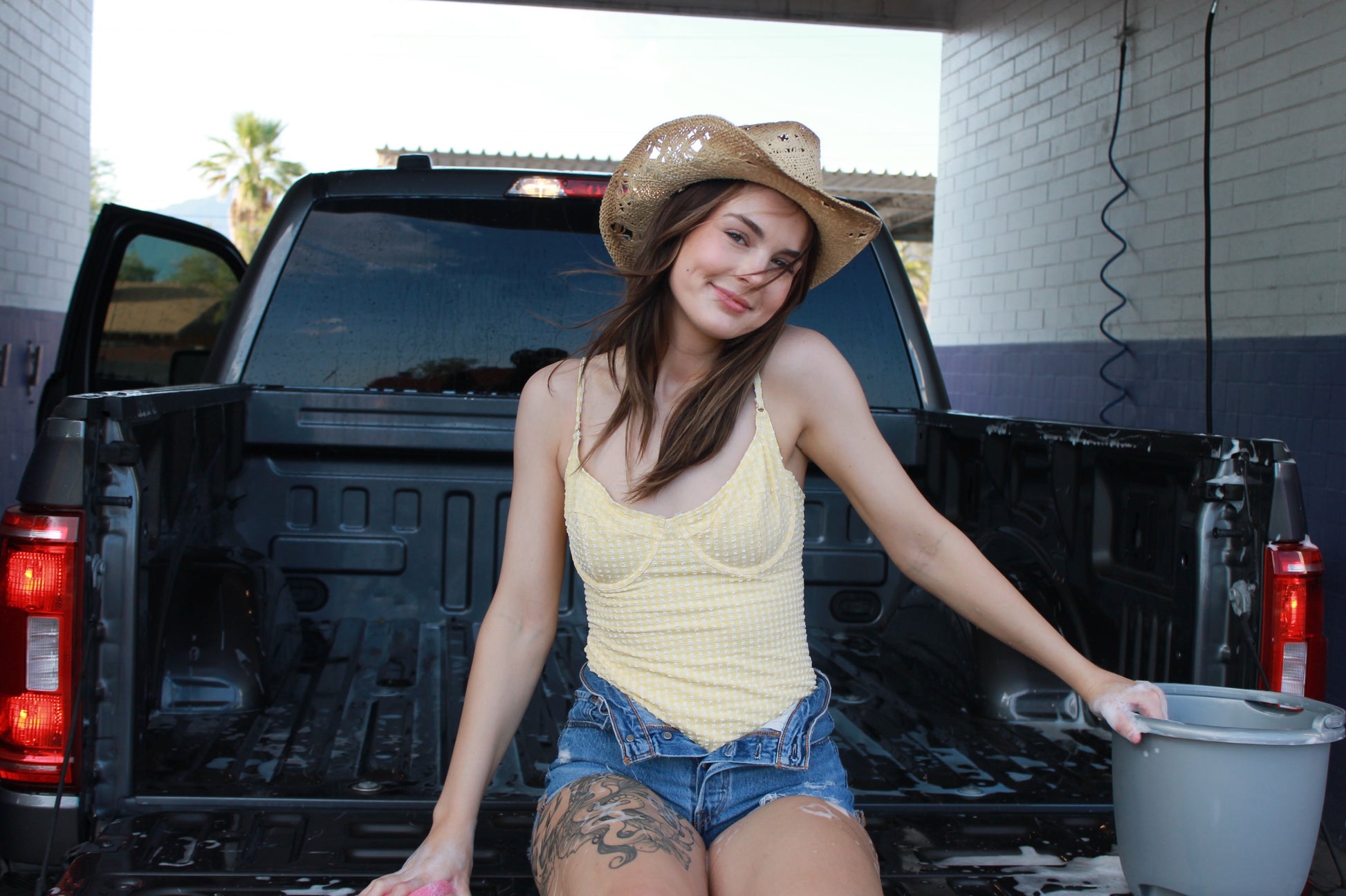 yellow & white gingham print one piece