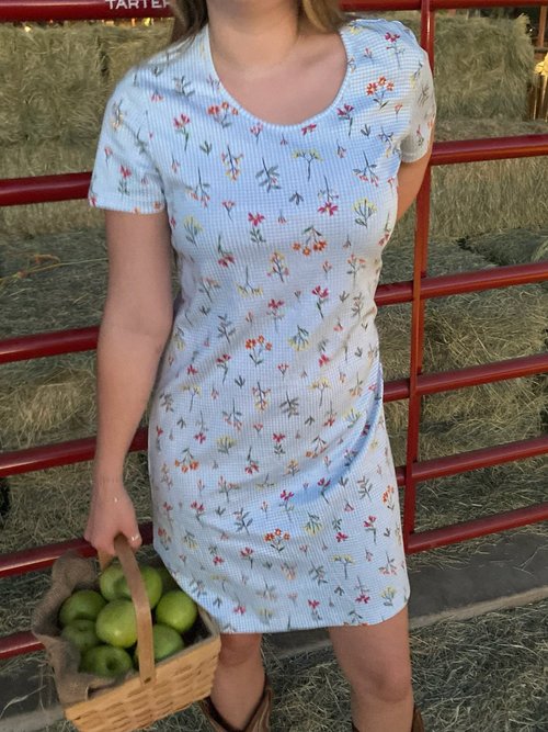 baby blue color accompanied by floral design; gingham pattern; soft material