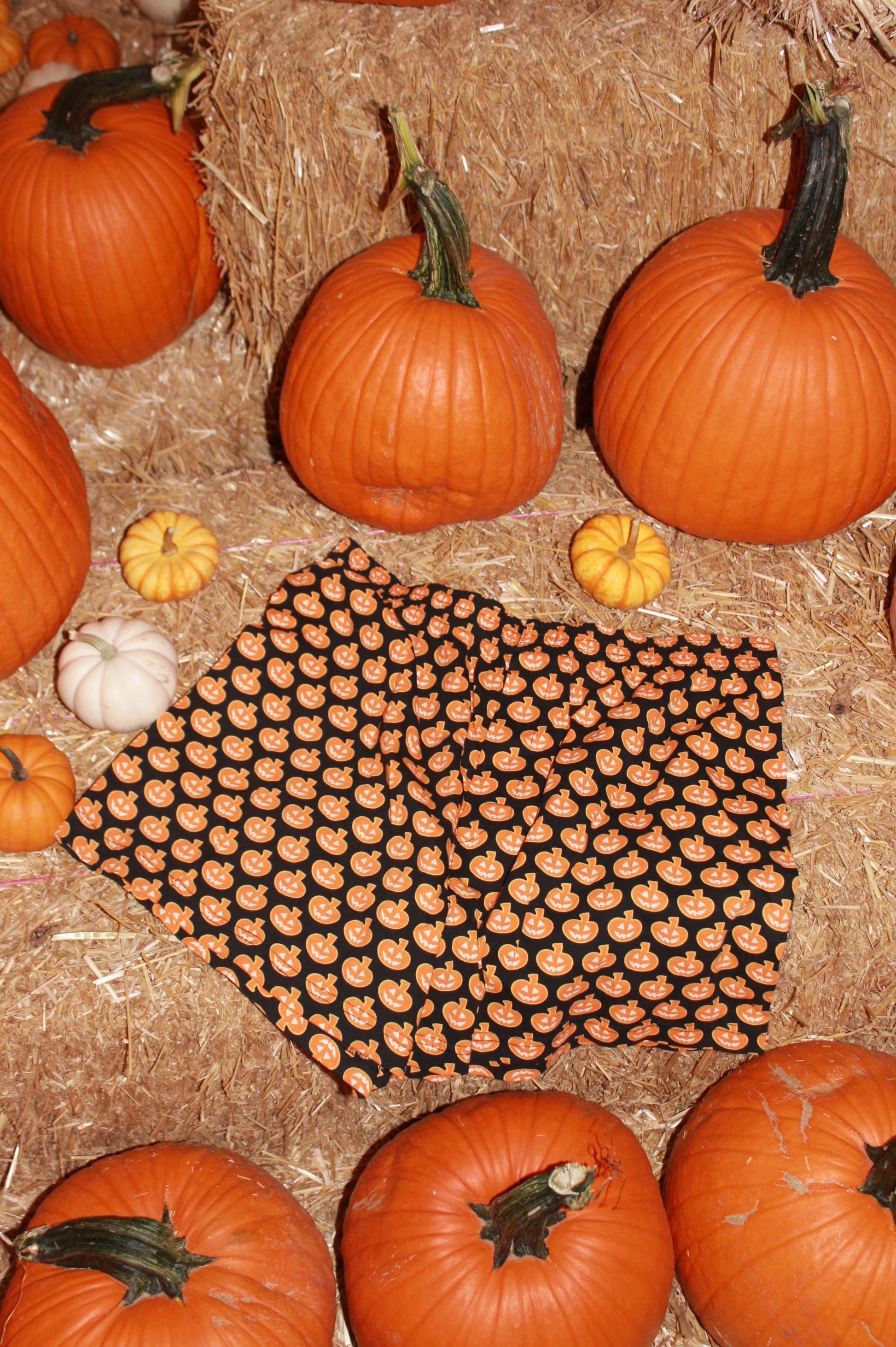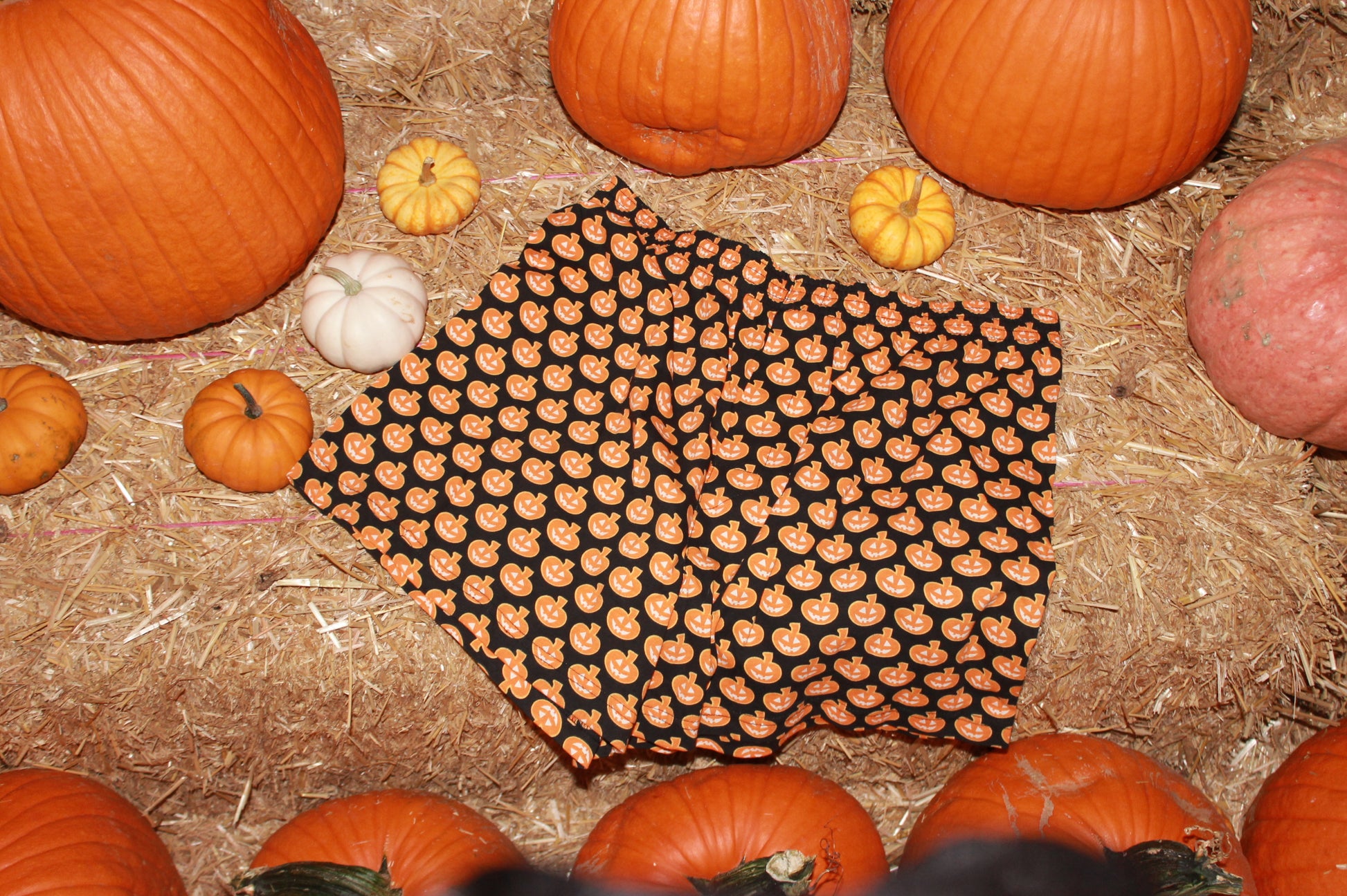 black fabric with pumpkin pattern.