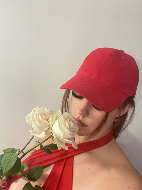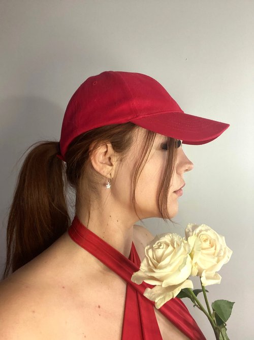 red baseball hat